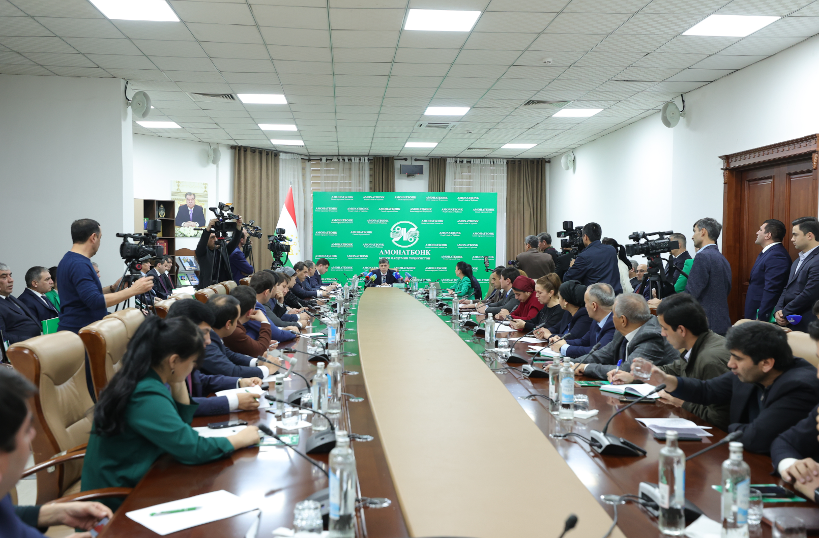 Дар нишасти матбуотӣ бо намояндагони воситаҳои ахбори омма, раиси раёсати “Амонатбонк” Салимзода А.А., мушовири бахши ёрдамчии Президенти Ҷумҳурии Тоҷикистон оид ба масъалаҳои иқтисодӣ Қосимзода И.Ш., муовини якуми раиси раёсат Худоёрзода Х.Б., муовини раиси раёсат Ризвонзода Ф.З., ва роҳбарони воҳидҳои сохтории саридораи Бонк ширкат варзиданд.